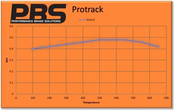 The ProTrack compound is also ceramic metallic material that has milder initial bite than the prorace compound the with excellent control and feel with powerful stopping power 0.40 to 0.48mu this compound is designed for light occasional track use or wet conditions and for race series that have to use a low grip Tyre with less noise and dust