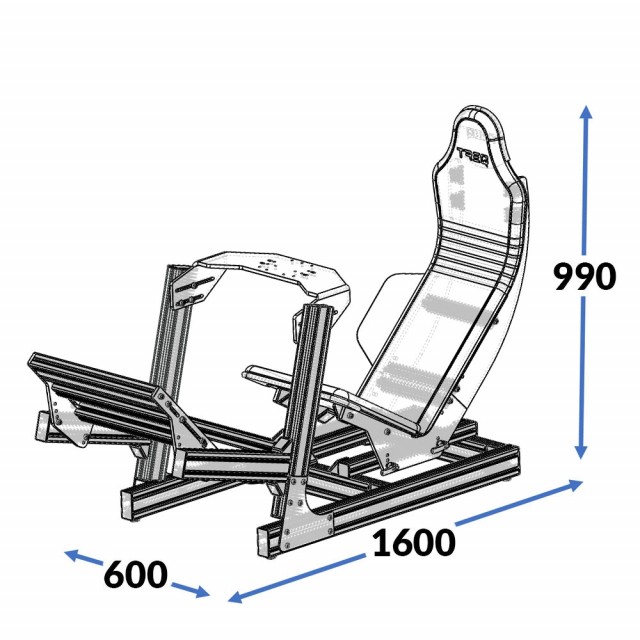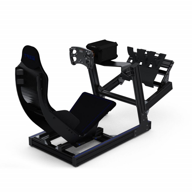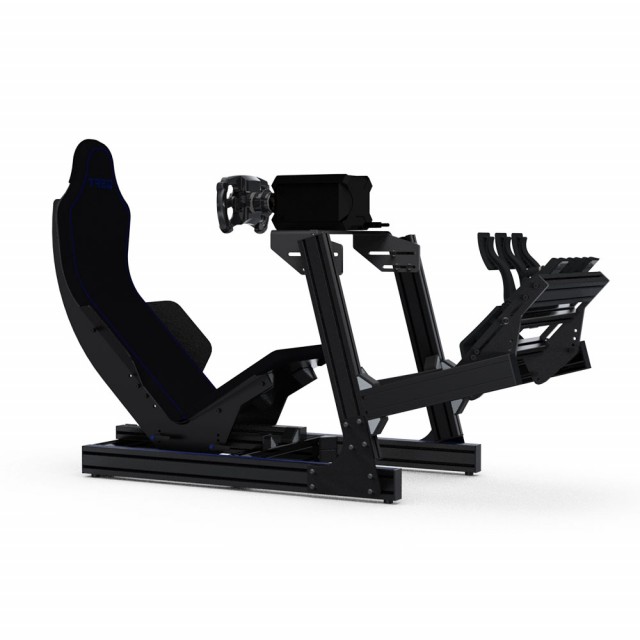 eel like an F1 driver with the all new TREQ FORMULA. Build mostly from 80/20 aluminum profiles, this formula style rig delivers you the F1 seating position while giving you the strength and stiffness you need from a rig. With it’s all black finish it will look good in any room you place it.