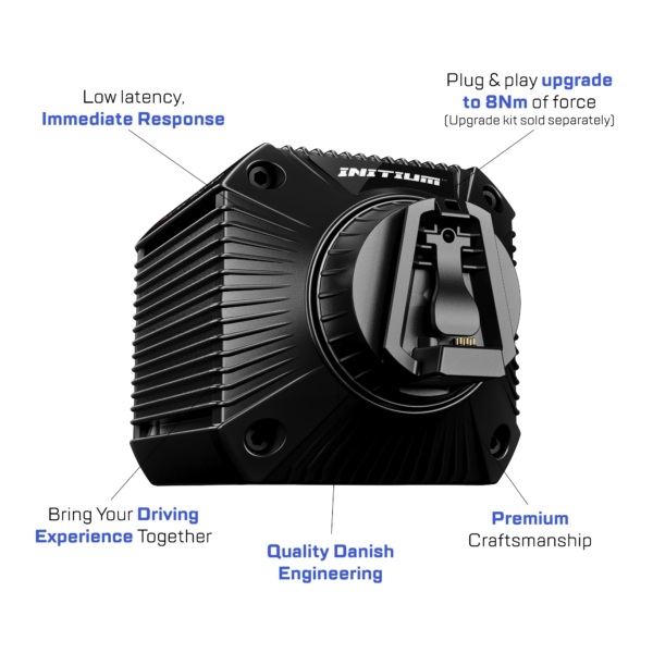 The Initium’s powerful 5.5NM force feedback servo motor and low-latency motor controller enables unparalleled racing responsiveness.