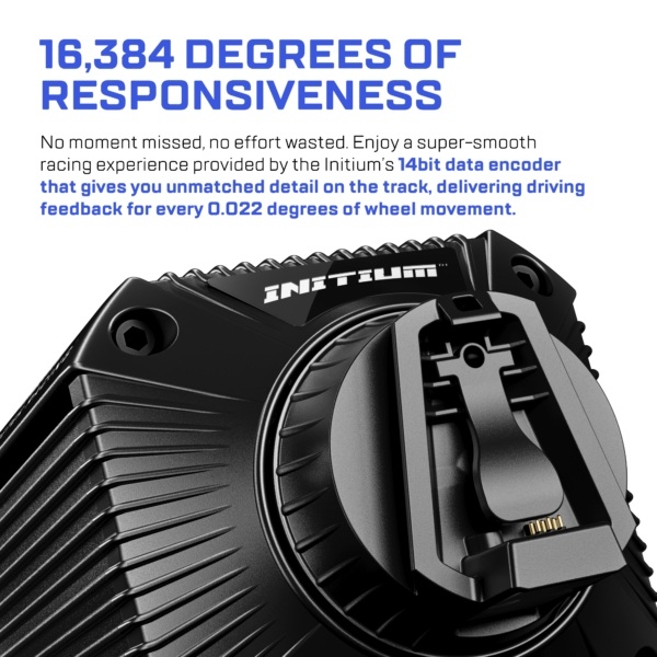 Enjoy a super-smooth racing experience provided by the Initium’s 14bit data encoder that gives you unmatched detail on the track, delivering driving feedback for every 0.022 degrees of wheel movement.